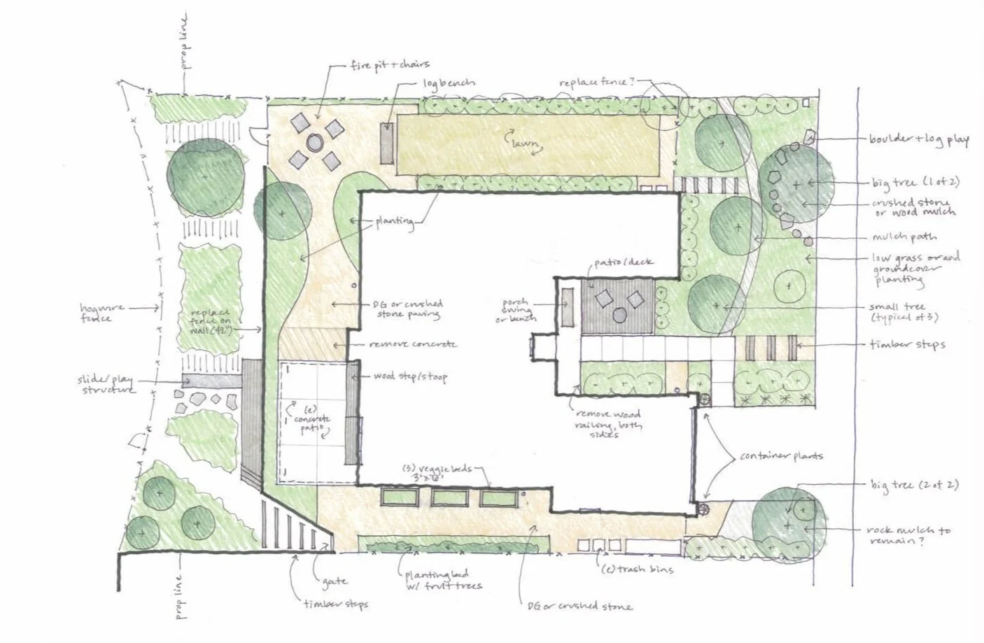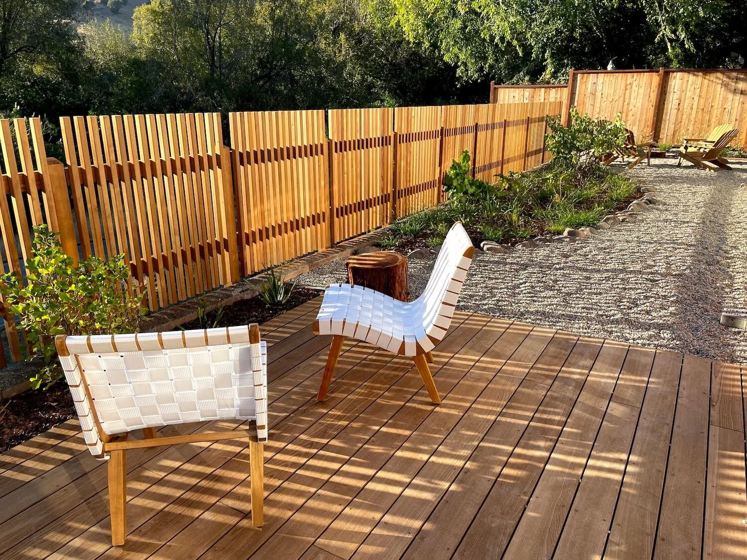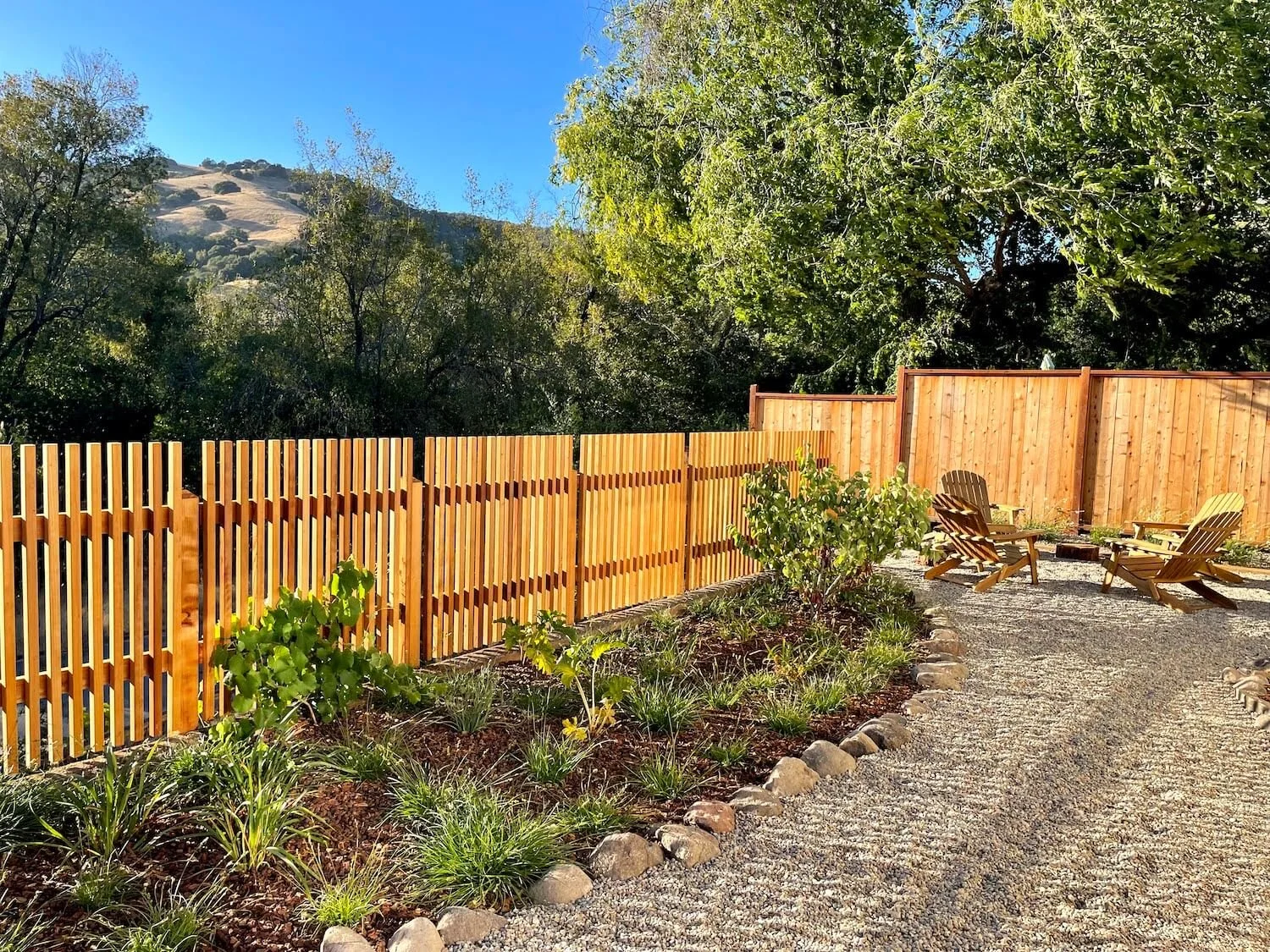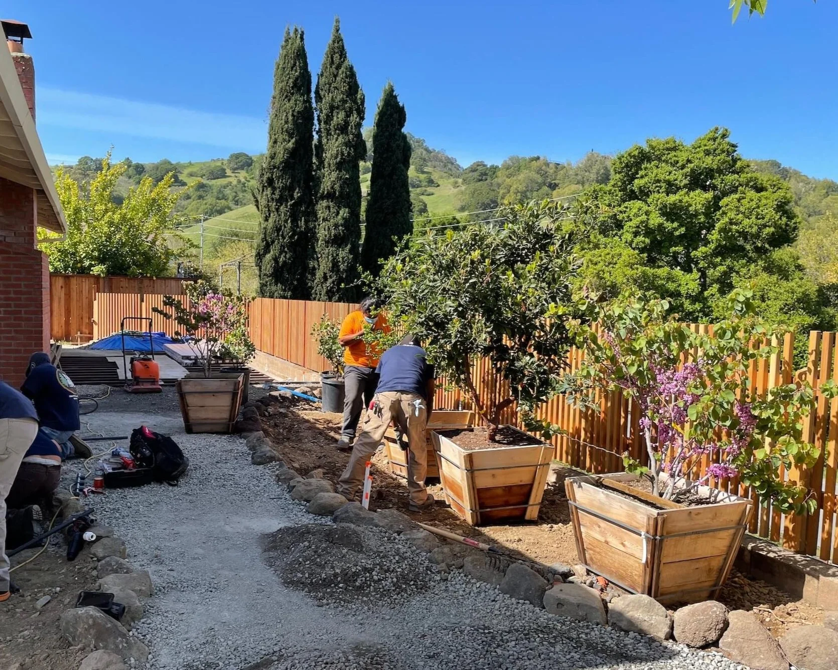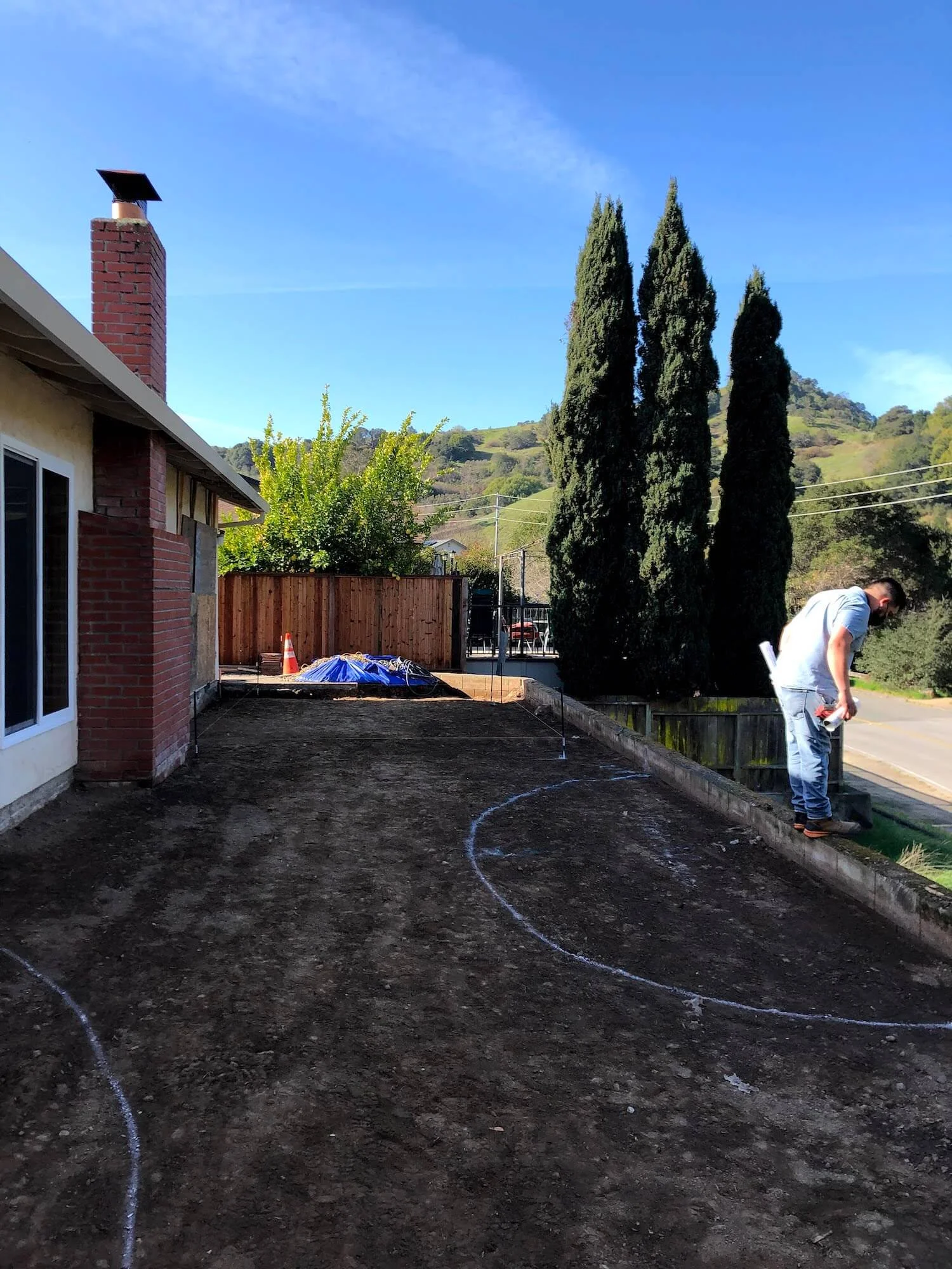 This garden was designed for a young family to grow and play in. Perched above Miller Creek in Lucas Valley, the client’s new home had a panoramic view of California’s rolling green hills, just begging to be revealed. Hidden behind an old metal shade structure, a tall fence, and overgrown shrubs, we cleared it all away, opened up the space, and created the conditions to marvel at their view.